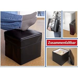 8102800 Zauber-Hocker Features: -Kunstleder in edler Optik und feiner Ausf hrung. -Eine zus tzliche Sitzgelegenheit und gleichzeitig ein Geheimfach. -Der komplette Hocker ist unter dem abnehmbaren Sitzpolster als gro es Staufach nutzbar. -Bei Bedarf platzsparend zusammenklappbar. Zauber-Hocker Produktdetails: -Material: Kunstleder. -Belastbar: bis 90 Kg. -Durchmesser: 32cm. -Ma e: 32cm H x 32cm W x 32cm T.